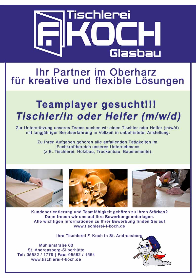 Zur Unterstützung unseres Teams suchen wir einen Tischler oder Helfer (m/w/d) mit langjähriger Berufserfahrung in Vollzeit in unbefristeter Anstellung.
