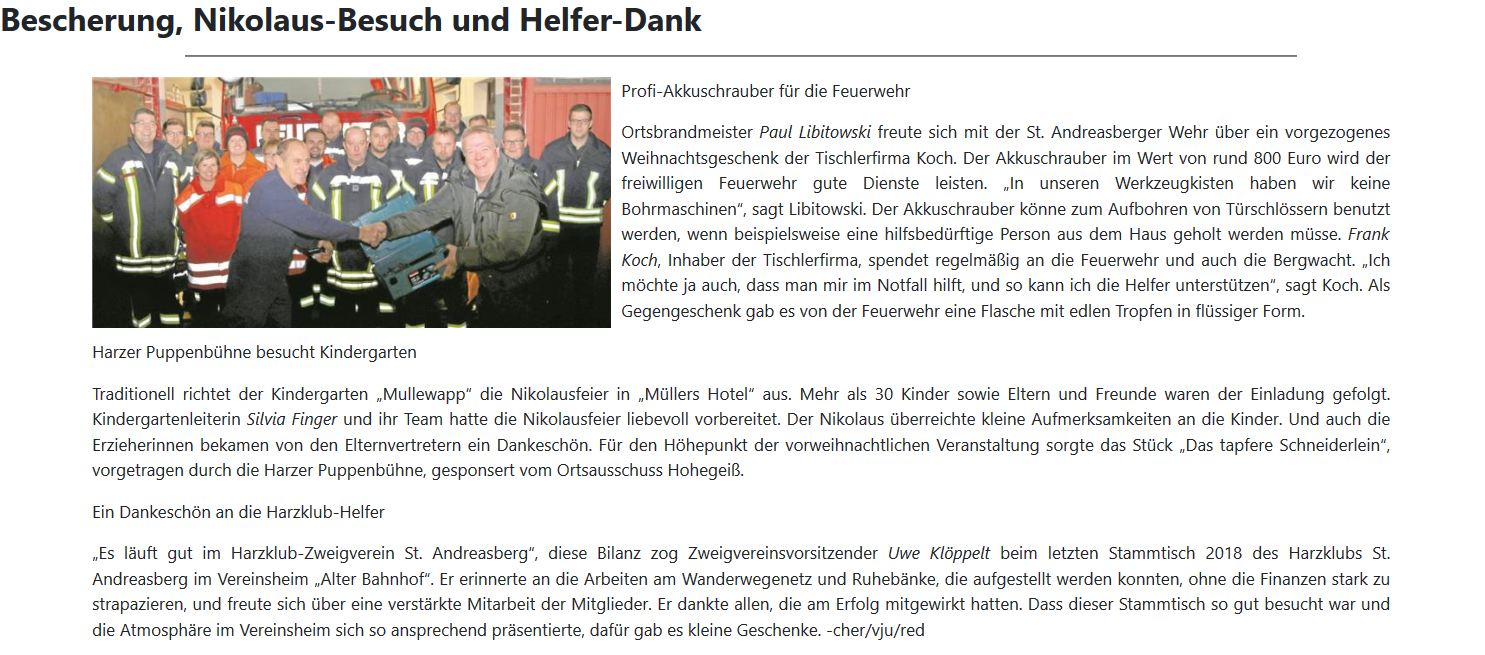 Ganz oben auf der Liste unseres außergeschäftlichen Engagements steht die Förderung von Sport- und Freizeitaktivitäten. Mit Unterstützung und Hilfsbereitschaft wurde schon so manche Anschaffung für verschiednee Vereine des Ober- und des Südharzes ermöglicht, und zahlreiche Veranstaltung gefördert. Hier sehen Sie eine kleine Auswahl: